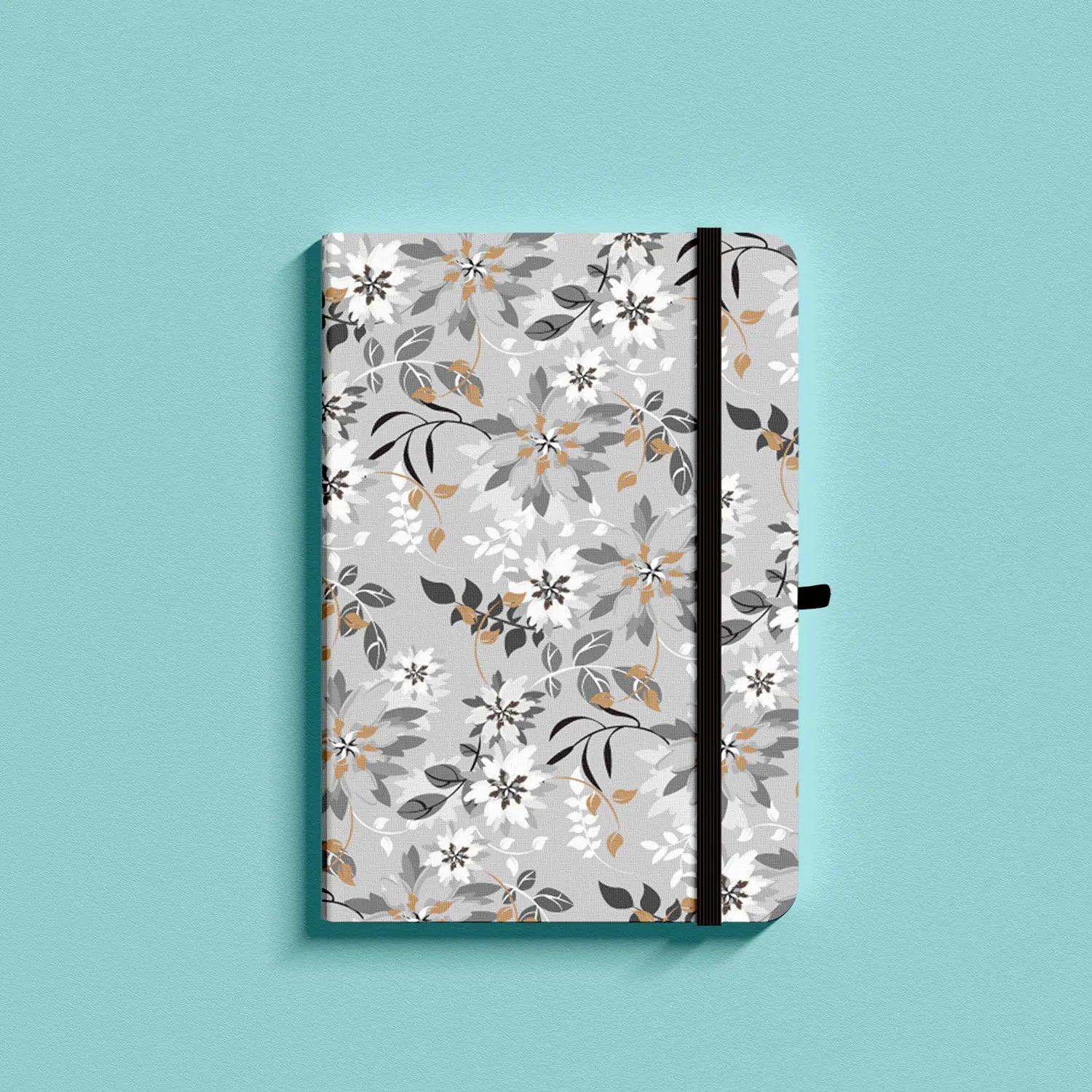 Grey Floral Premium A5 Hardcover Journal Dot Grid Notebook with Elastic Band, Pen Loop, Inner Pocket, and Ribbon Marker